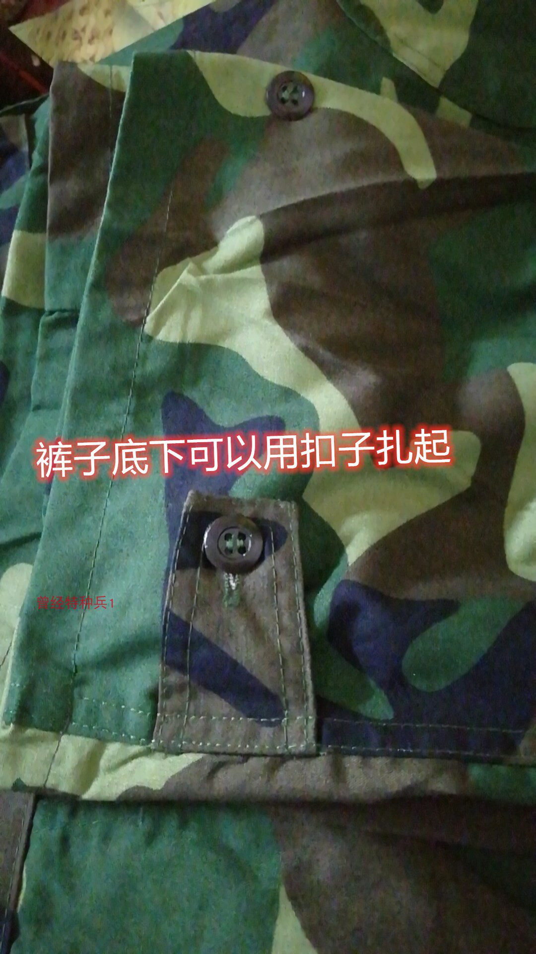 97 - type old woodland camouflage copper button work clothes strong crotch wide and unfiled outdoor work camouflage suit