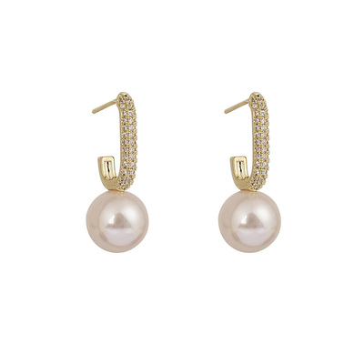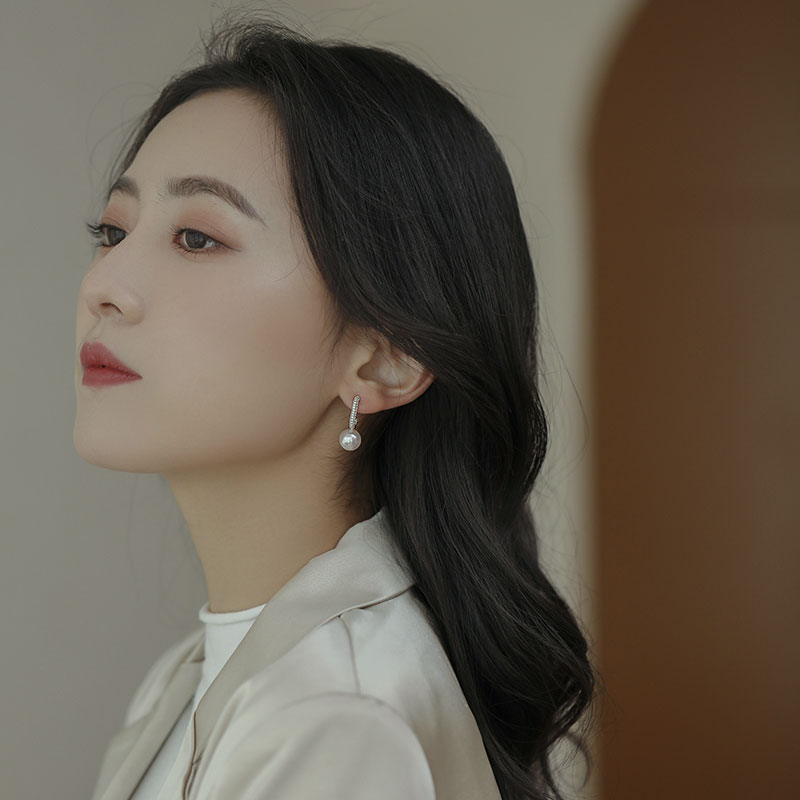 Retro Hong Kong Pearl Earring High Summer Micro - inlaid Drilling Ear Decoration 2022 New Mode of Pure Silver Temperance Ear Nail