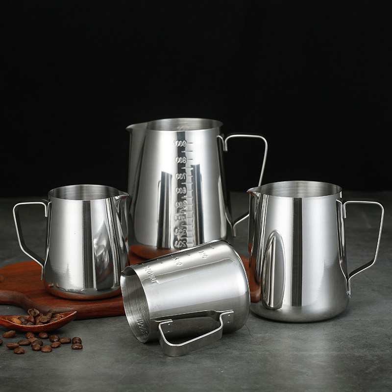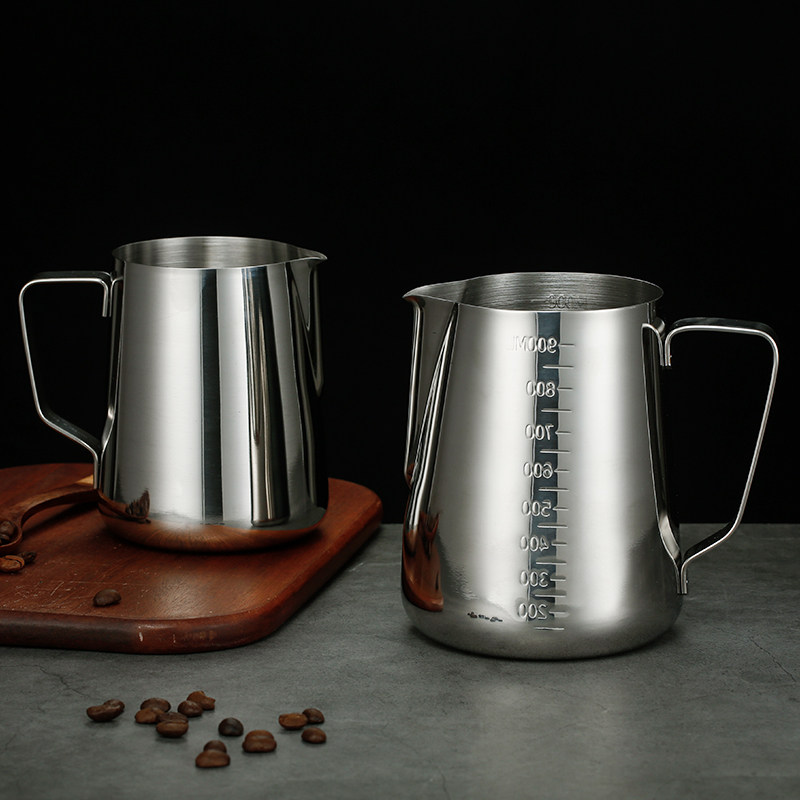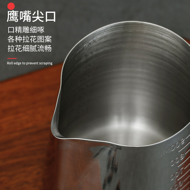 Stainless steel pointed tip Labré cup with lid with scale measuring cup Coffee pull-in-cylinder thickened with milk bubble cup Coffee pot