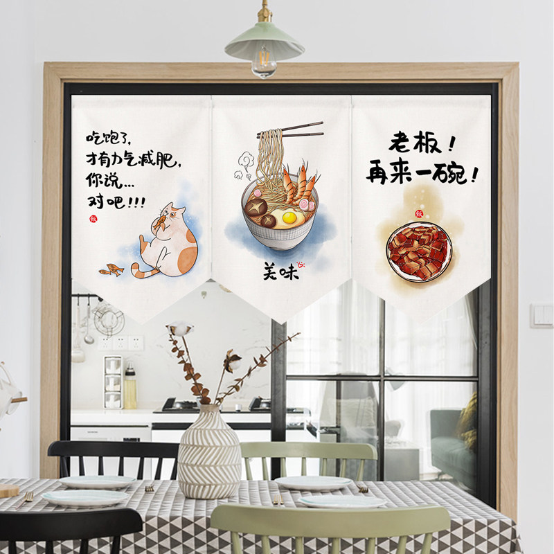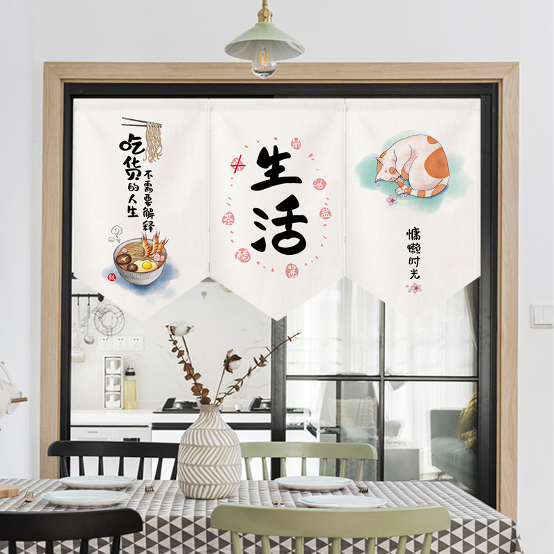 Kitchen Partition Window Japan Style restaurant Short door Curtain Hotel Dining Room Table Shelter Curtain door curtain Half-curtain triangular flag curtain free of punch