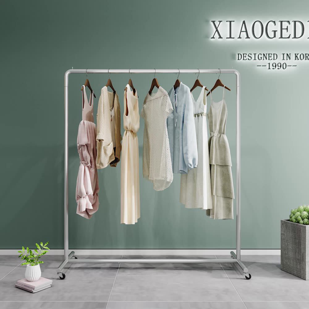 Stainless Steel Clothing Store Show Shelves Landing Hanger Girls Uni-Pole Pendulum Stall Drying Racks Special Mobile Belt Wheel-Taobao