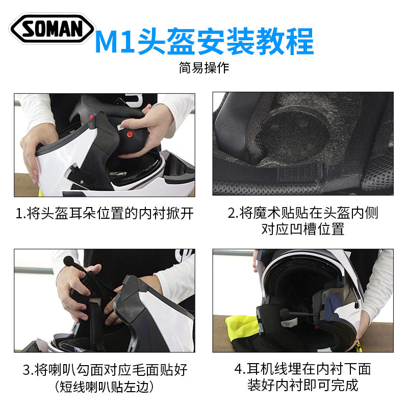 Soman helmet built-in bluetooth headset integrated wireless high-definition listening to songs and answering calls can be connected to two mobile phones M1