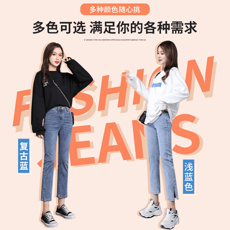 The new tube high waist nine - point loose seven - eight pipe pants in 2022 - 2022 new jab jeans