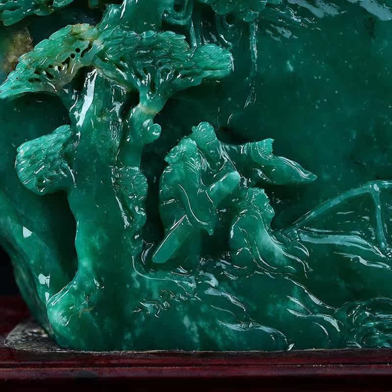 Ya'an Green Creek Mountain Visit Friend Pendulum piece Hand Engraving Home Decoration Furnishing Jade Craft Gift Pendulum gift Gift Collection Certificate