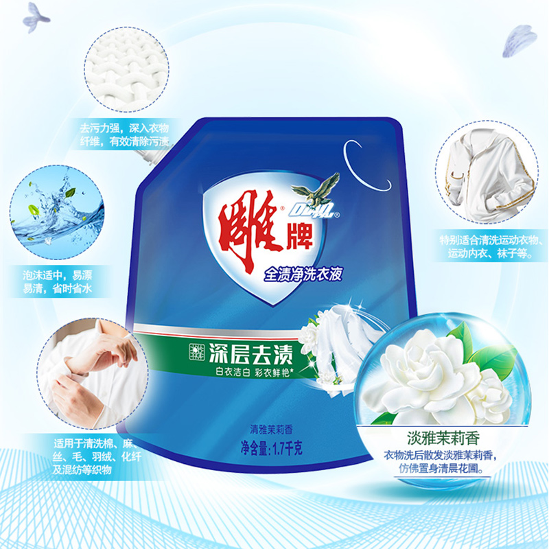 Carved Laundry Detergent full stain Pure deep de-stains Jasmine white clothes White home 1 7kg2 Bag Promotion Combined Dress