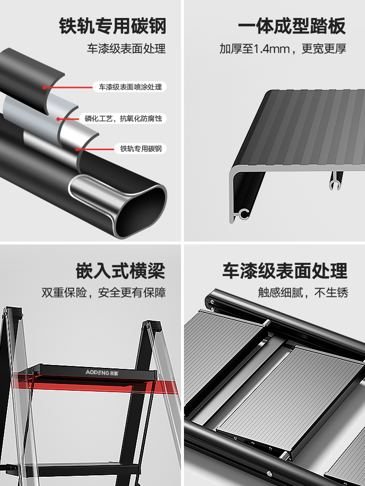 O Peng Home Multi-functional folding ladder Thickened Aluminum Alloy Herringbone Ladder Flower Shelf Three-step Staircase Portable Small Ladder
