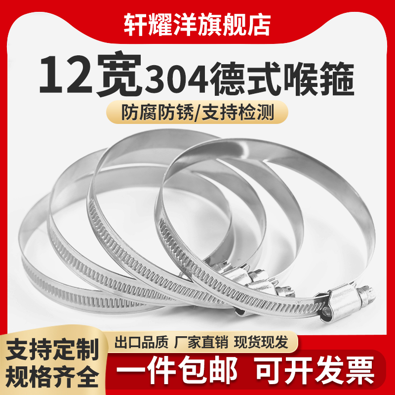 304 German stainless steel throat hoop bandwidth 12MM clamp hoop water pipe clamp all steel throat hoop solid not hollow