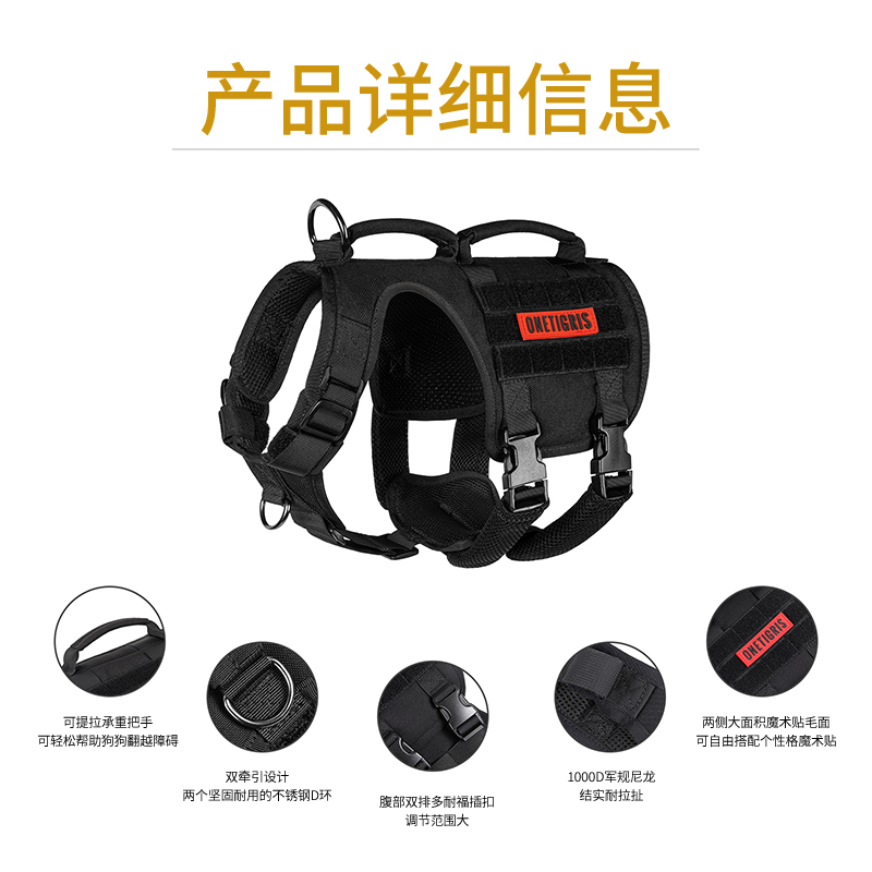 One Tiger (Gladiator) k9 tactical dog chest holding baby bag medium and large dog Corgi traction rope vest type can be pulled