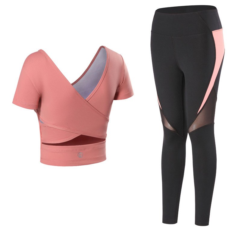 Yoga suit suit women's professional high-end fashion gym sports slimming thin quick-drying summer short-sleeved thin section
