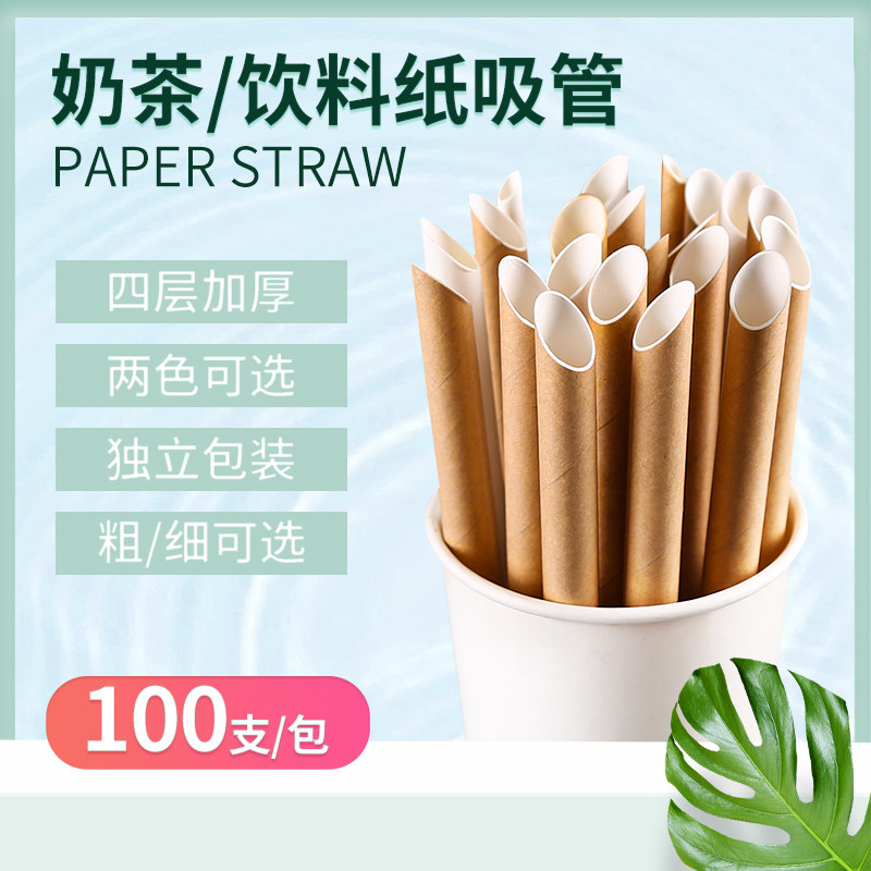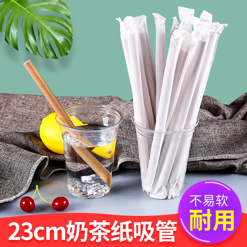 Disposable paper 23CM pearl milk tea coarse straw 0 6 degradable single independent packaging kraft straw