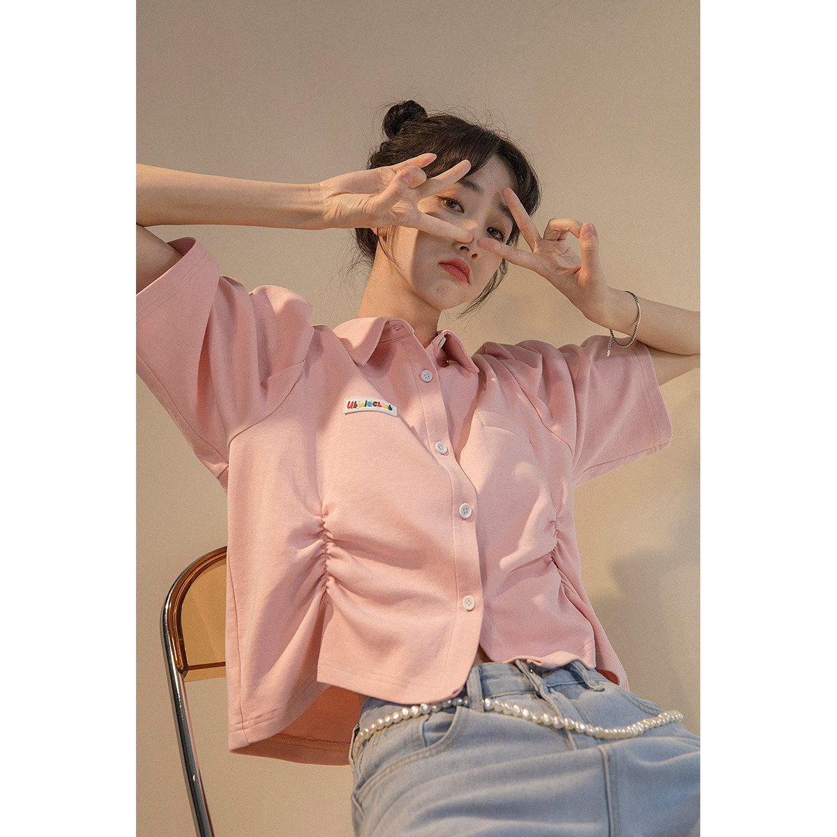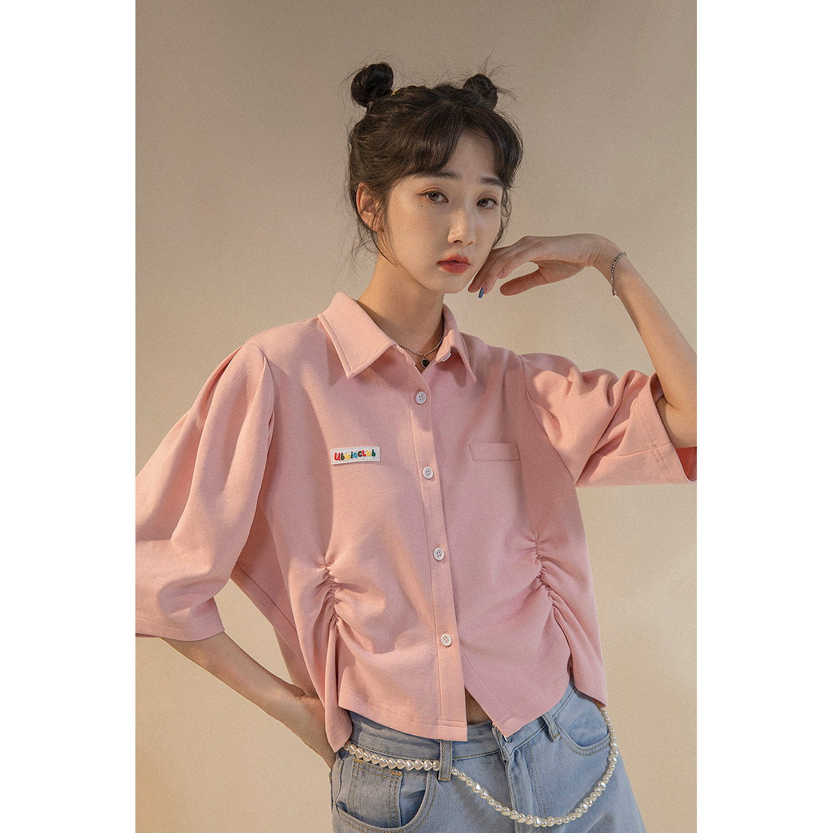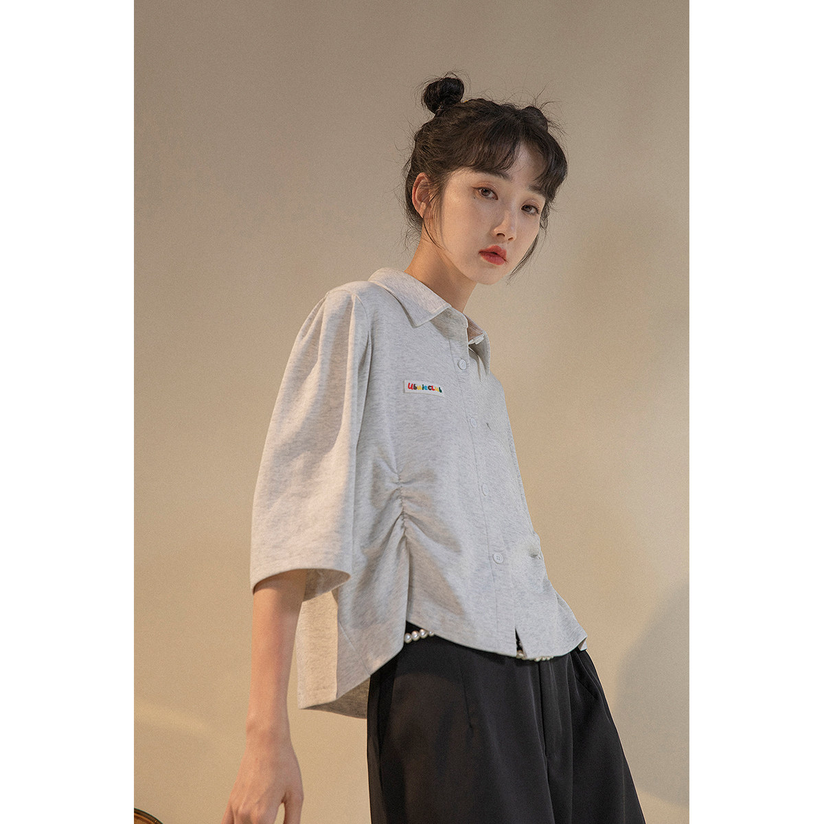 UBUIE dried fish polo shirt short-sleeved t-shirt women's summer design sense shirt half-sleeved short lapel chic top