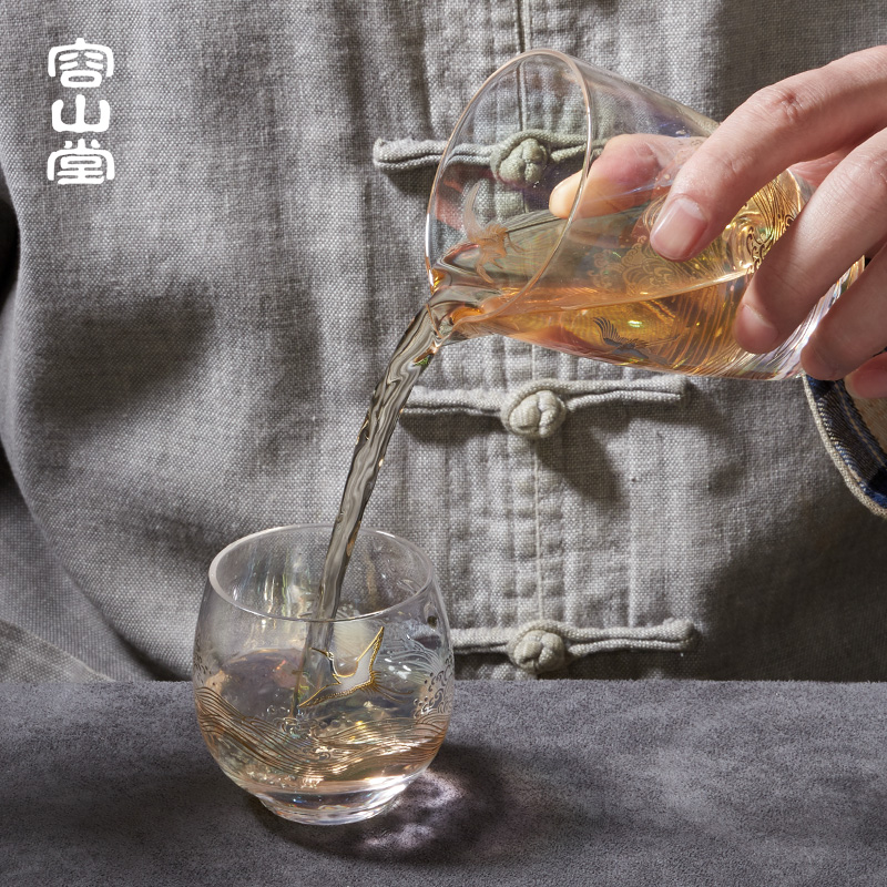 Brilliant Gold and Silver Burnt Glass Tea Set - Crane and Wave Prime Minister Cup Brilliant Gold and Silver Burnt Glass Tea Set - Crane and Wave Wide Mouth Cup