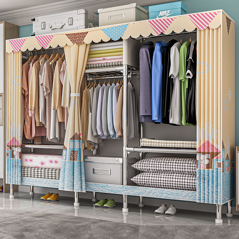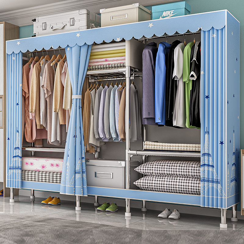 Simple wardrobe Household bedroom common wardrobe Steel frame thickened thickened reinforced simple modern rental room strong and durable