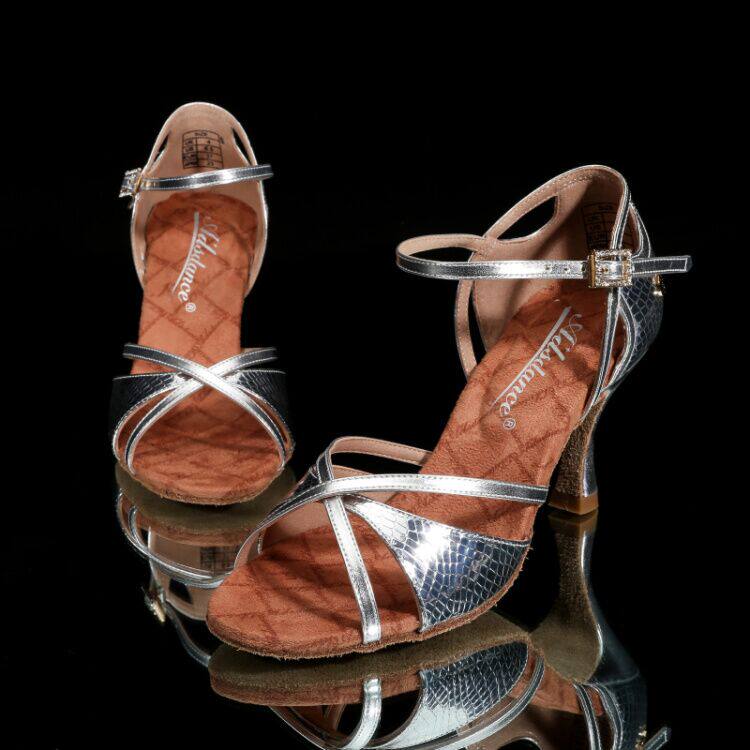ADS Latin dance shoes female adult soft bottom national standard professional silver dance shoes indoor high-heeled snake pattern dance shoes dance