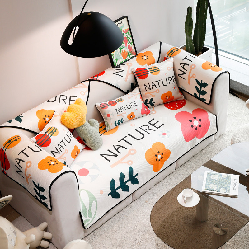 Minshun pastoral flower ice silk cool sofa cushion summer summer sofa cover cushion non-slip sofa towel