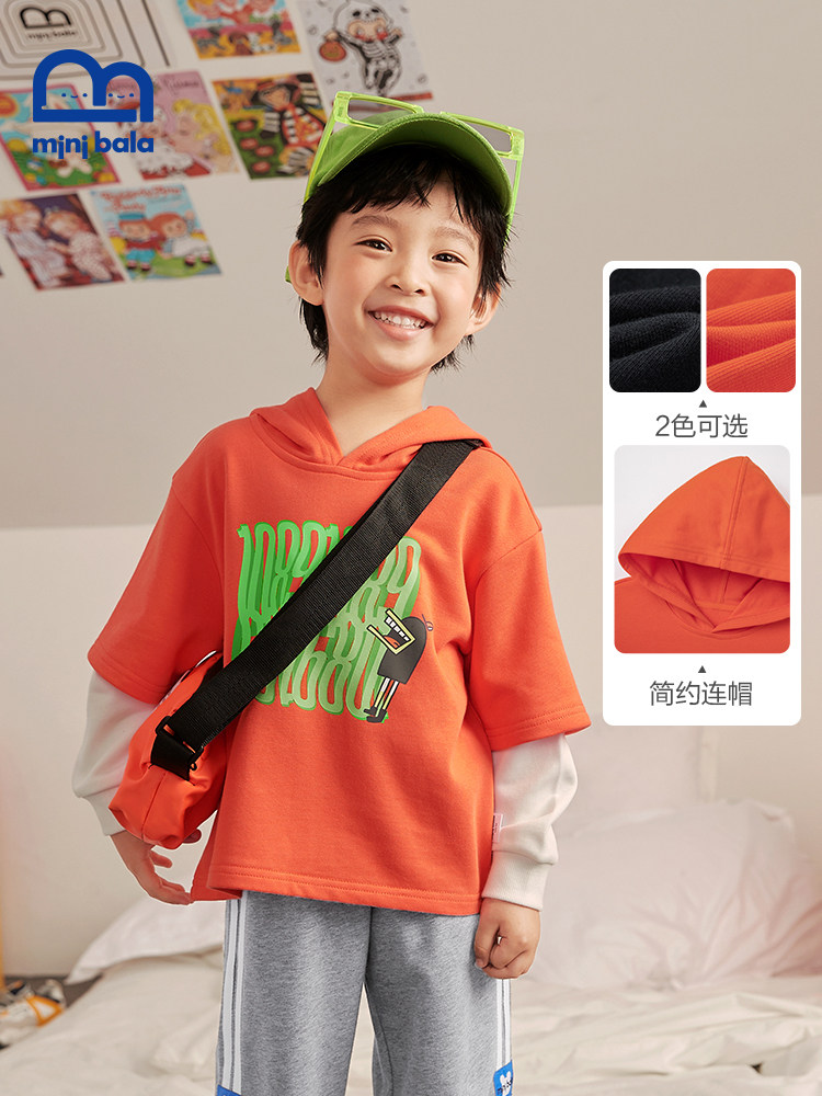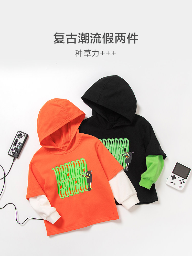 Mini Barabara children's sweater spring new boy's long-sleeved T-shirt fake two-piece top retro trendy cool fried street