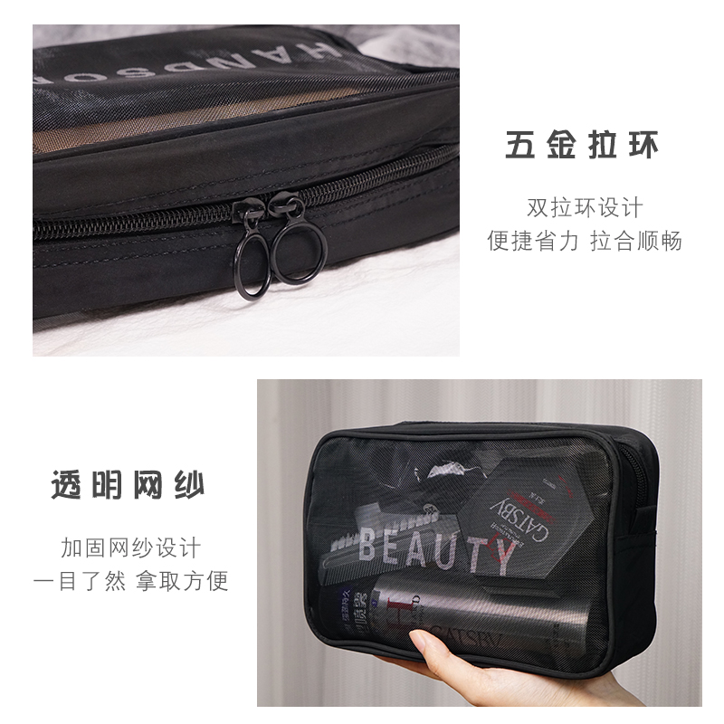 Cosmetic bag mesh wash bag translucent mesh mesh storage bag large capacity travel portable tool organizer box