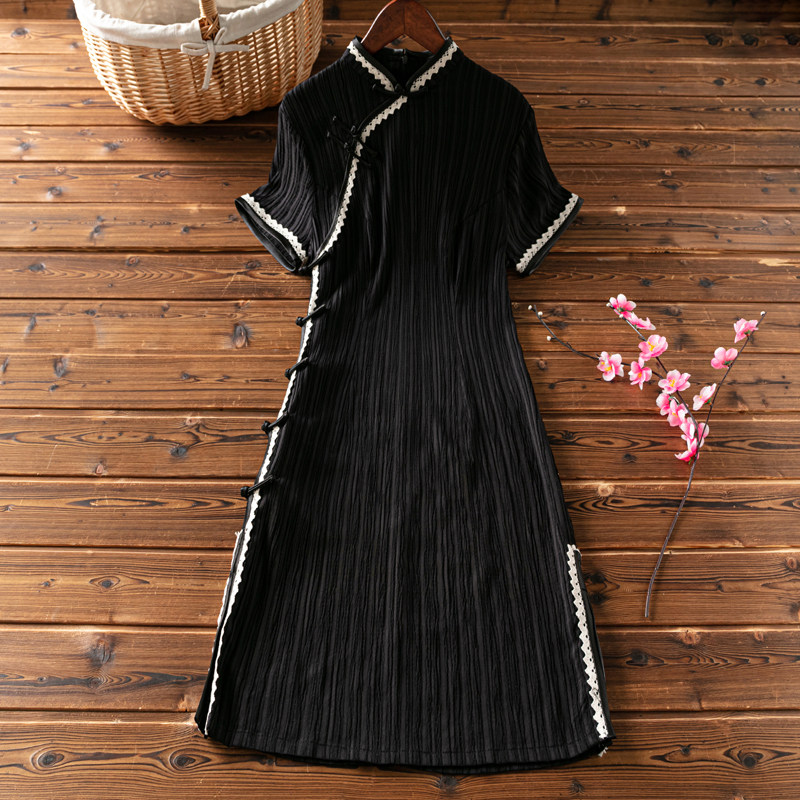 Black Qipao Woman Summer Improvement 2021 Summer new dress Temperament Style Retro Qipao Dress Women Dress