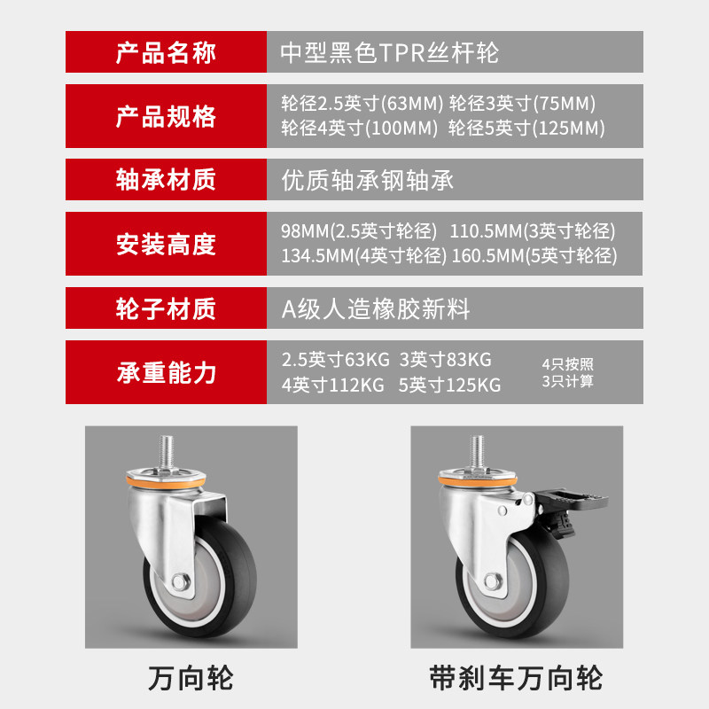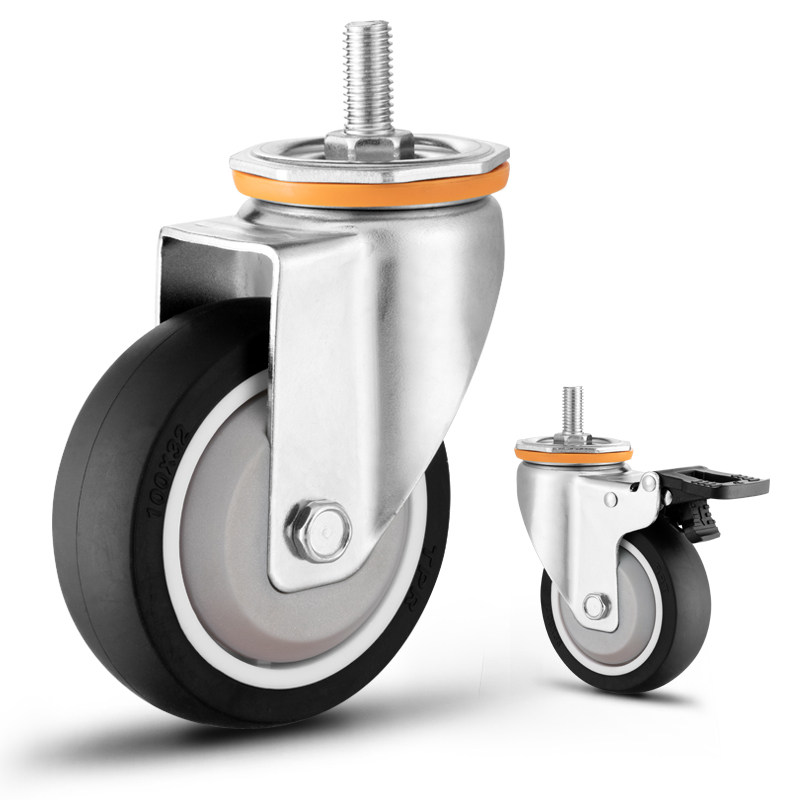 Mute casters 2 5 3 4 5 inch wheels M10 wire M12 wire rod universal belt brake universal wheel anti-winding