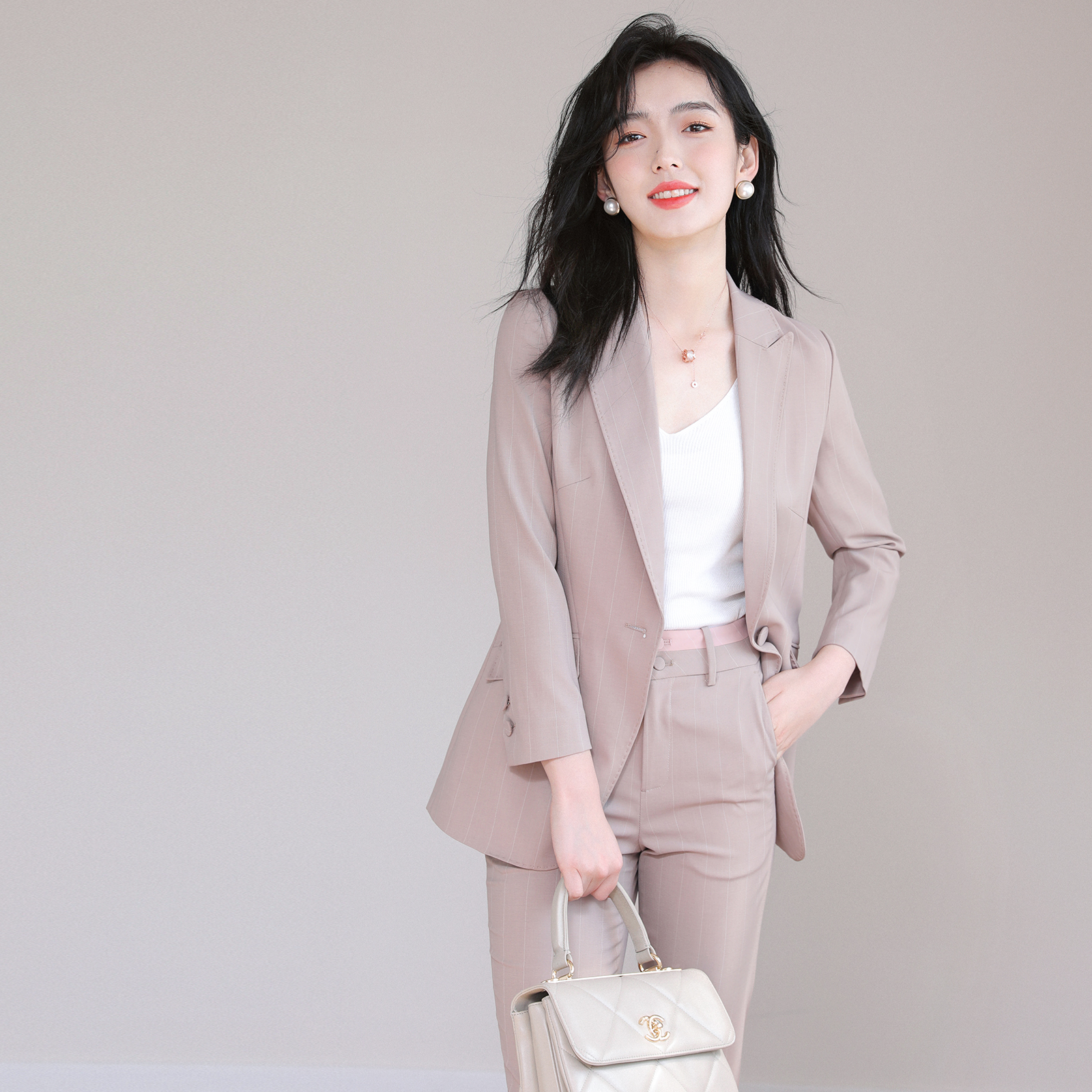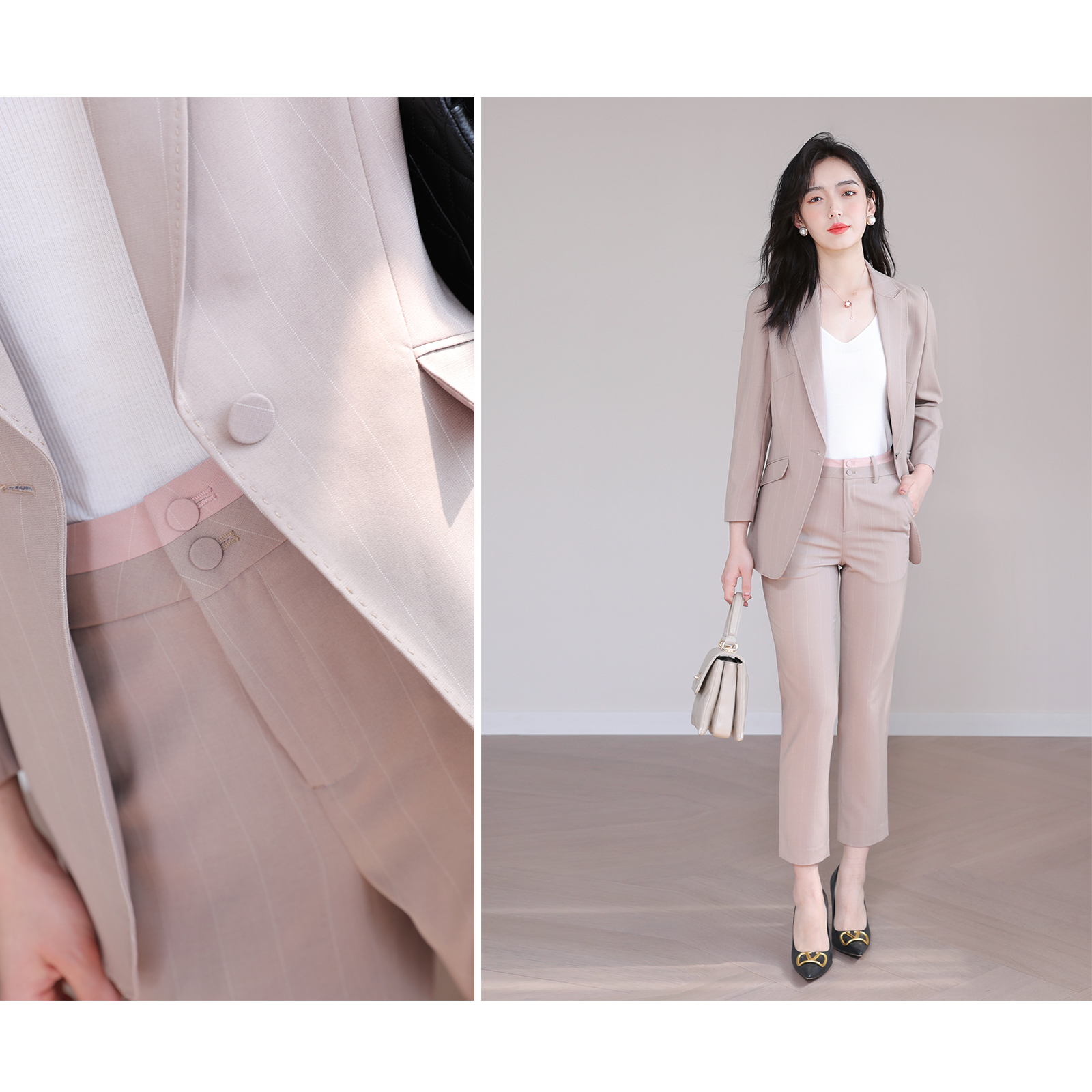 Dituton pink striped suit women's 2021 summer new small thin suit jacket
