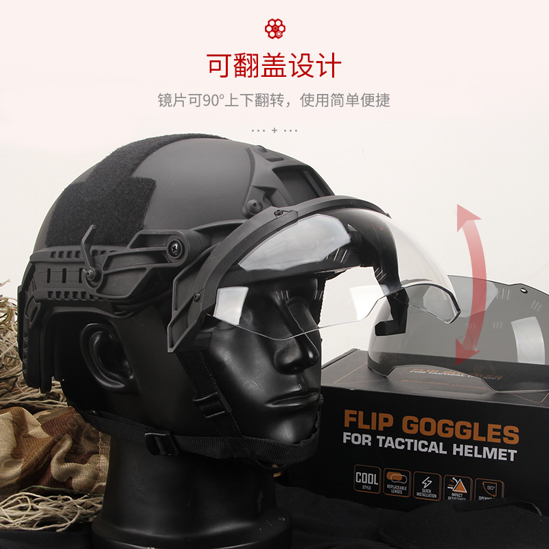 Tactical soldier op goggles tactical hard hat external suspension flip explosion-proof two-lens front block anti-fog anti-riot goggles