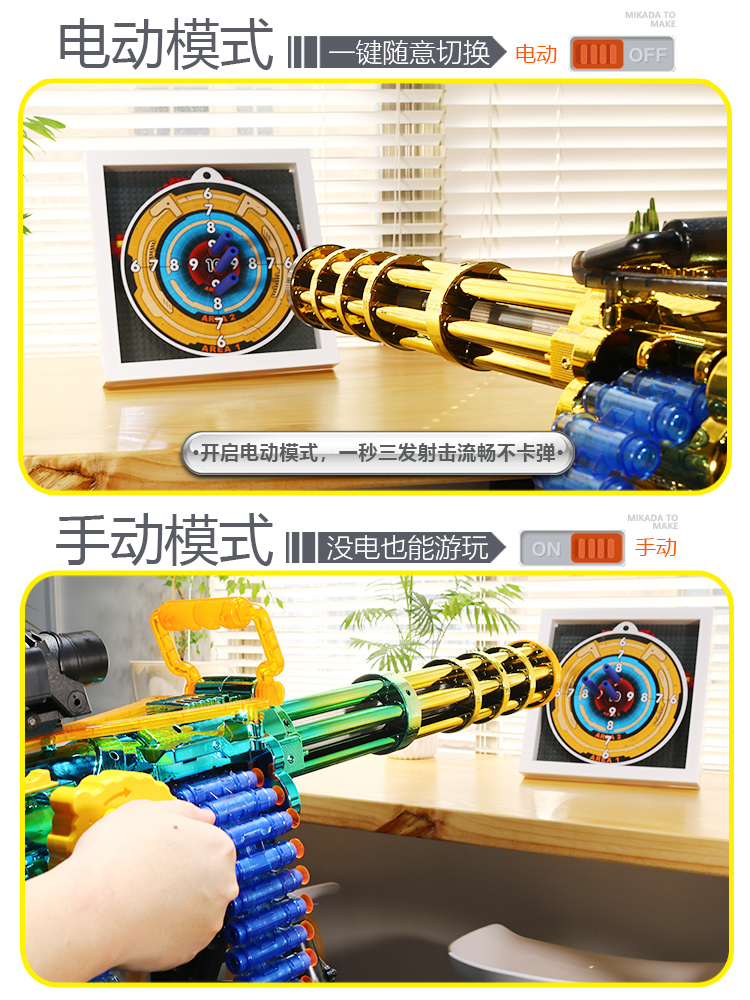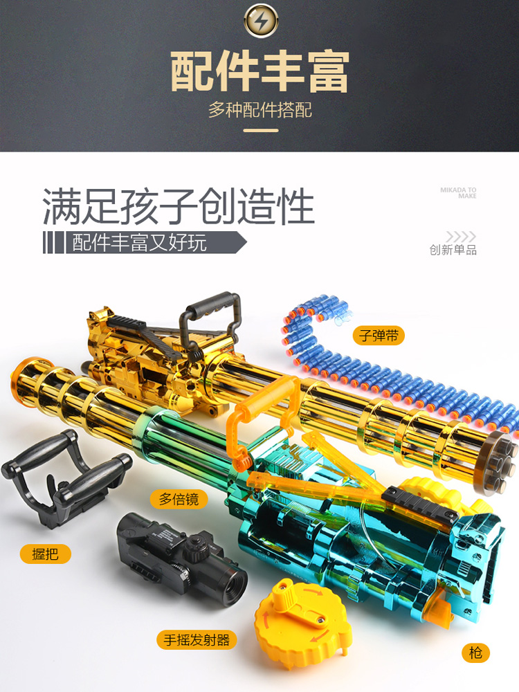Gold Gatlin Hand Self-Electric Integrated Tandem Hair Soft Play Toy Gun Emulation Male 61 Children's Day