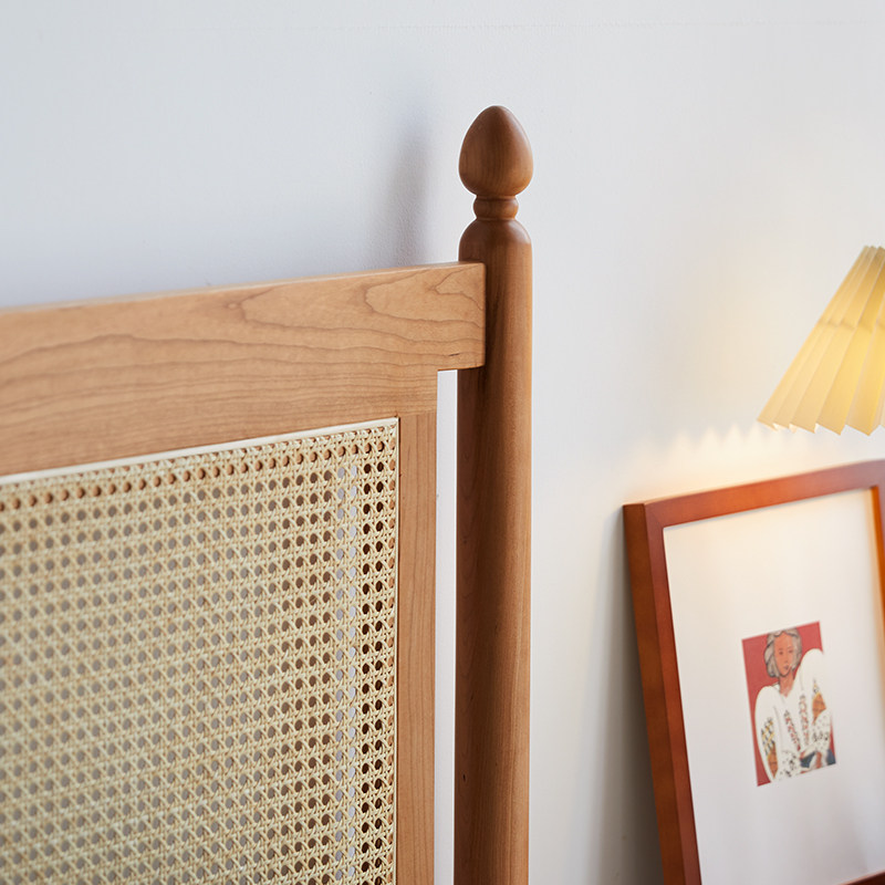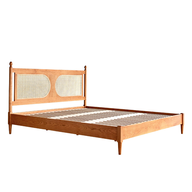 Nordic retro rattan choreography cherry wood solid wood small family type Japanese style double wedding bed 1 8 m 1 5 cherry wood furniture