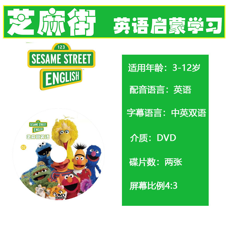 Children's cartoon Sesame Street English Complete Works Enlightenment Early Education HD 2DVD Learning English Disc DVD Disc