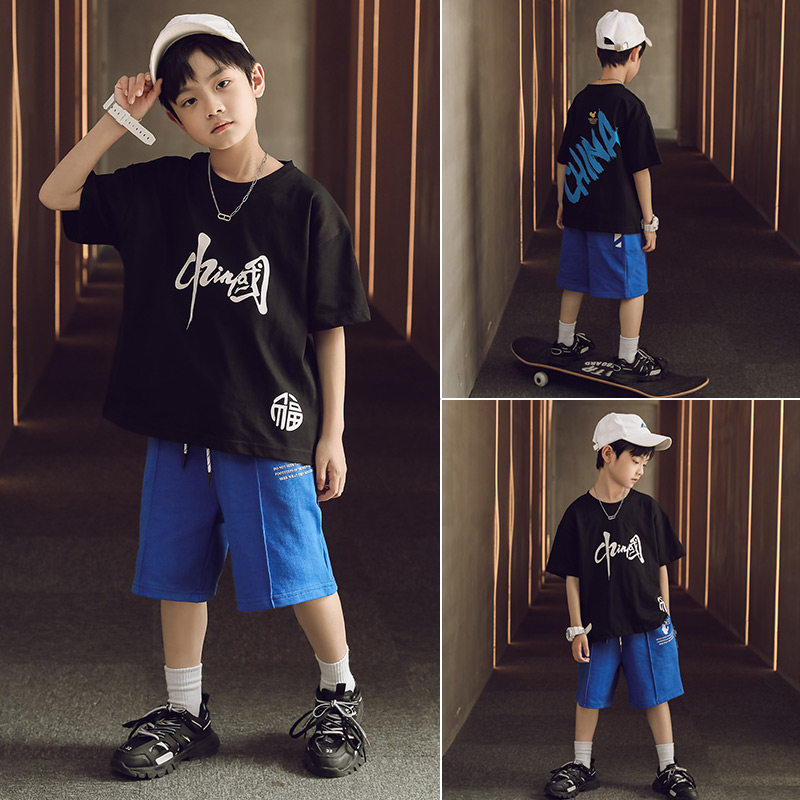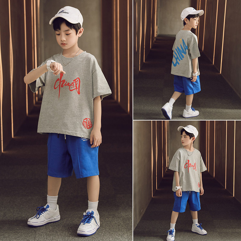 Kids Sports Boys Set Summer 2022 New Fashion Summer Wear Red Short Sleeves Big Boy Kids Handsome Boy