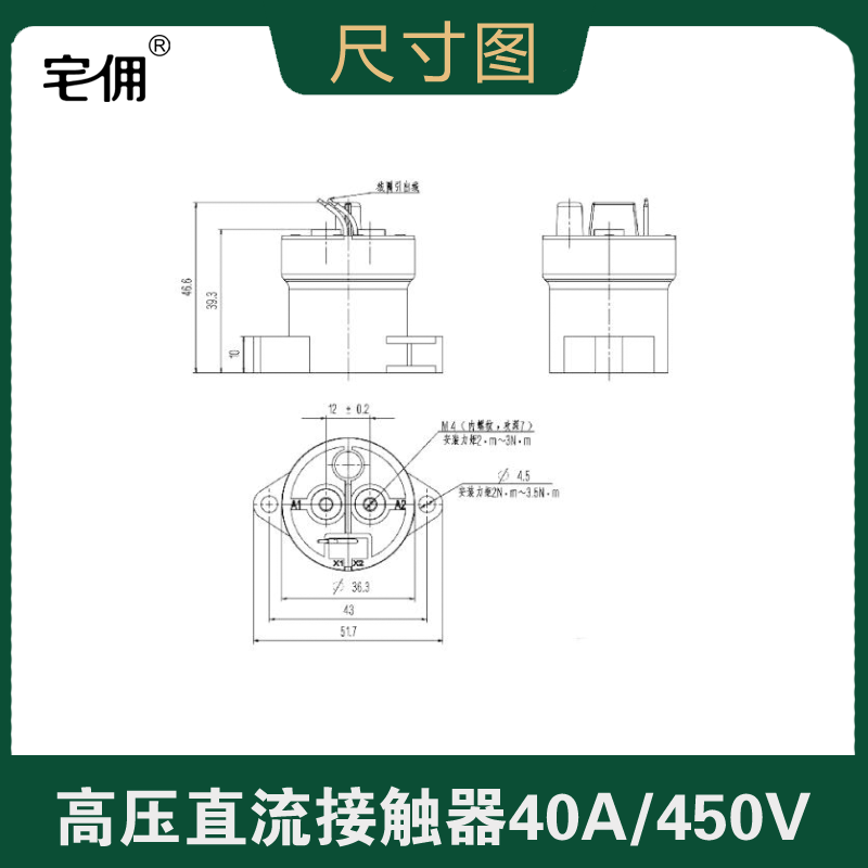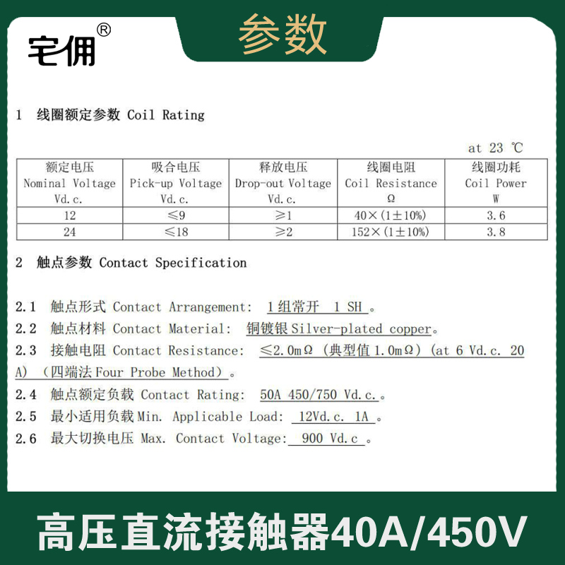 High voltage DC contactor 40A12V24V 450V New energy car charging pile extinguishing strong DC relay
