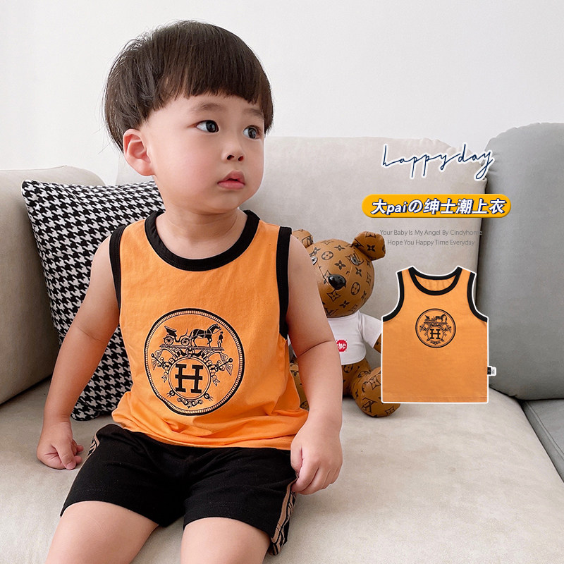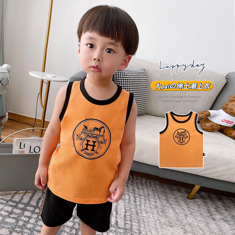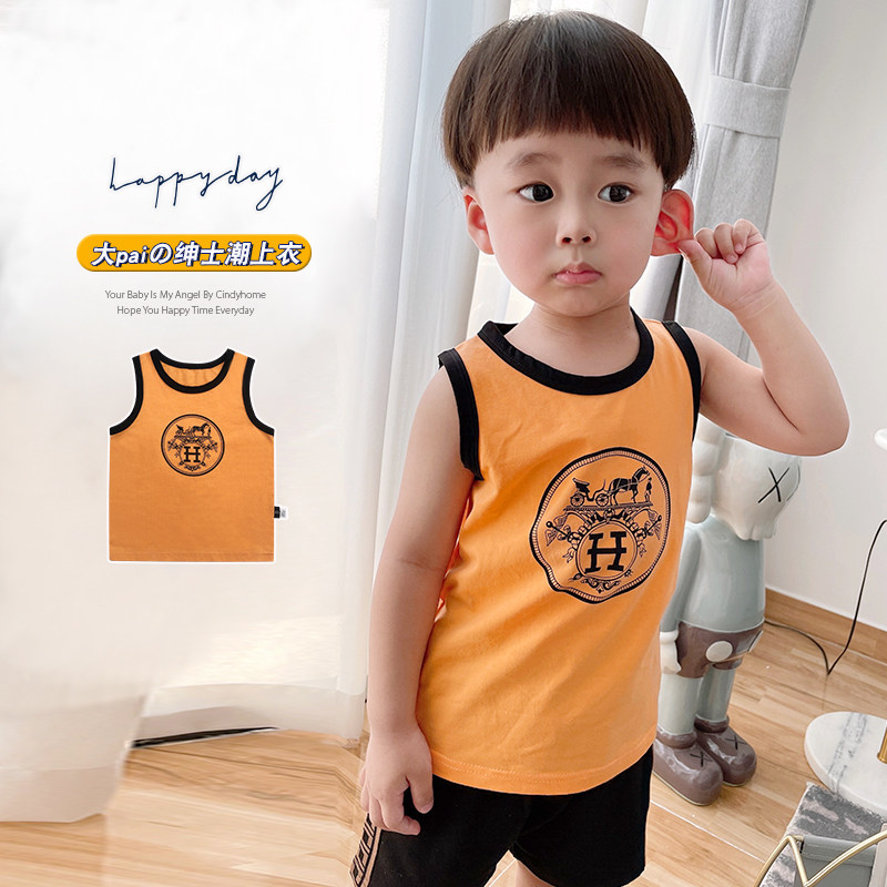 2022 Summer in children printed sleeveless vest pure cotton trend Ocean sends male baby thin clothes children summer clothes