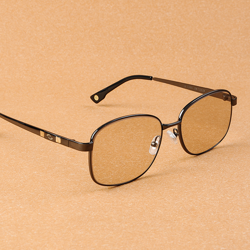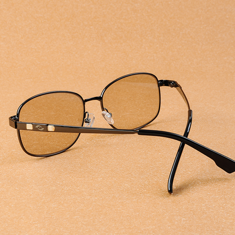 Gold frame, white transparent lens, gold frame, light brown lens, gold frame, medium brown lens, gold frame, dark brown lens, gun color frame, white transparent lens, gun color frame, light brown lens, gun color frame, medium brown lens, gun color