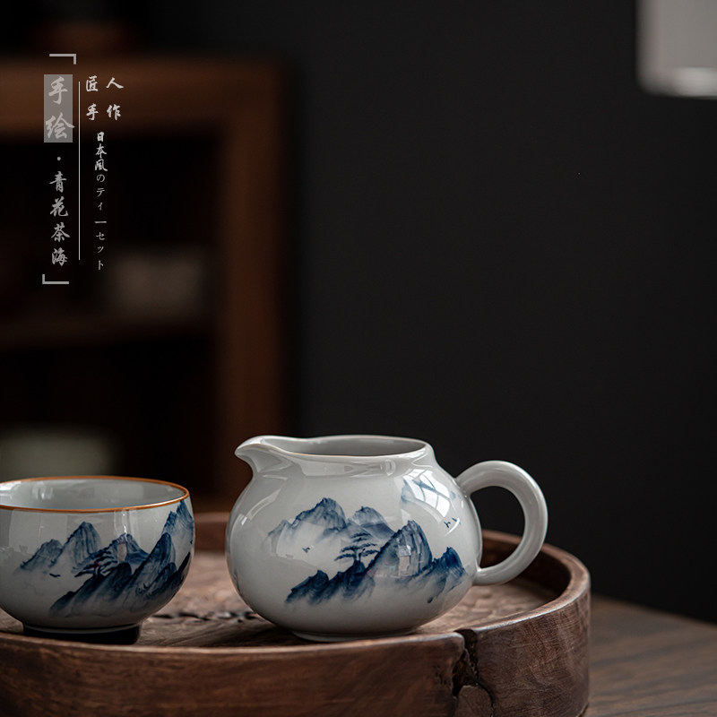 Retro fair cup ceramic tea sea high-end tea divider Japanese-style Kung Fu tea set hand-painted blue and white tea cup even tea cup - Taobao