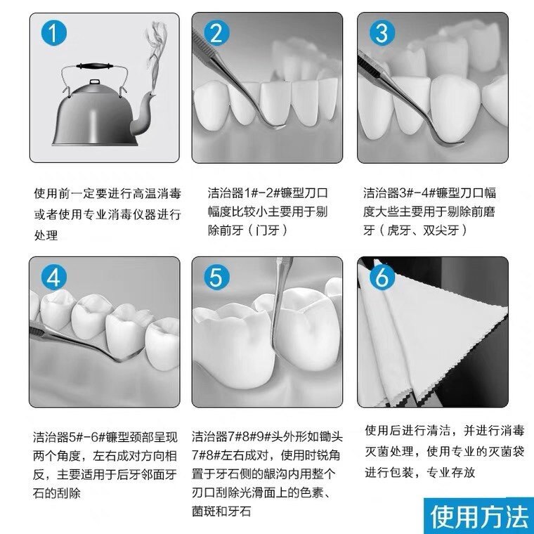 Dental Materials Handmade Cleaning Machine Gum Upper Periodontal Cleaning Dental Calculus Scraping instruments Practice examination with 6 sets