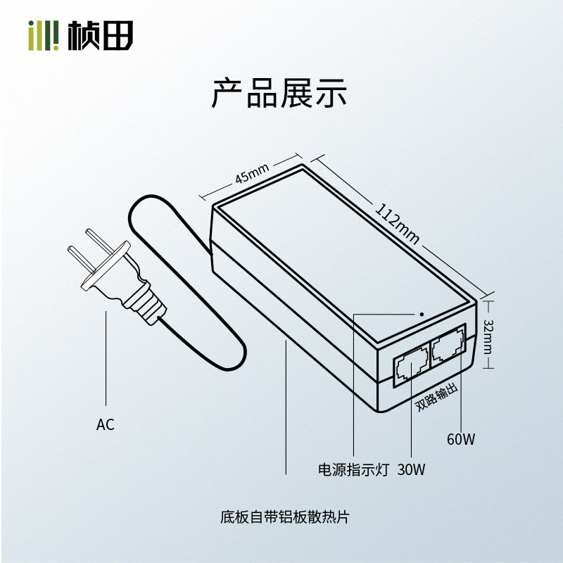 Zhentian 48V60W one thousand trillion POE power supply module Two-way output one thousand trillion POE power supply adapter 53011