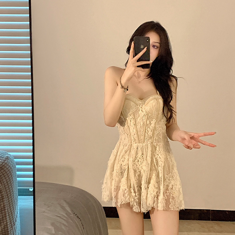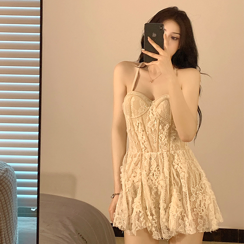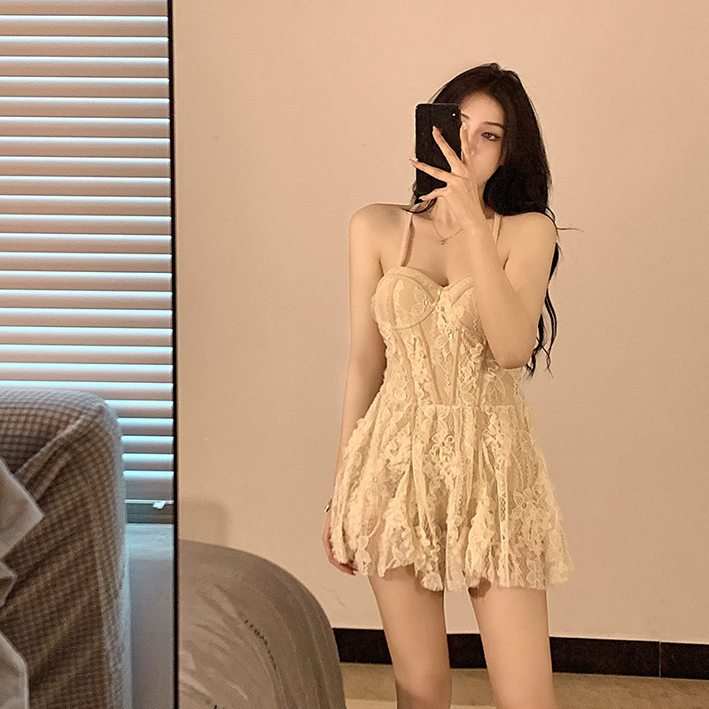 Sling dress type cover belly show thin sex rush hot spring vacation swimsuit fairy fan niche show waist lace new