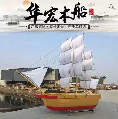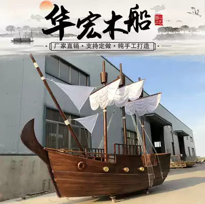 Wooden boat outdoor large landscape decoration sail photography props antique European pirate war Zheng He treasure ship ornament model