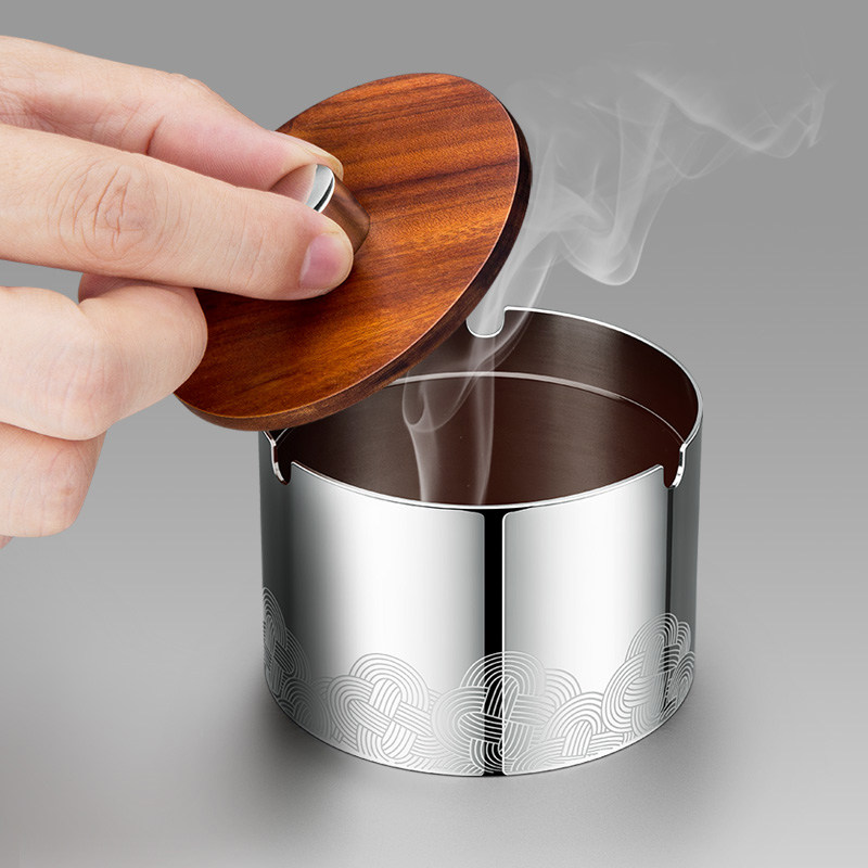 German MODERN creative personality trendy cigarette ashtray anti-fly ash with lid Chinese style retro closed gift customisation
