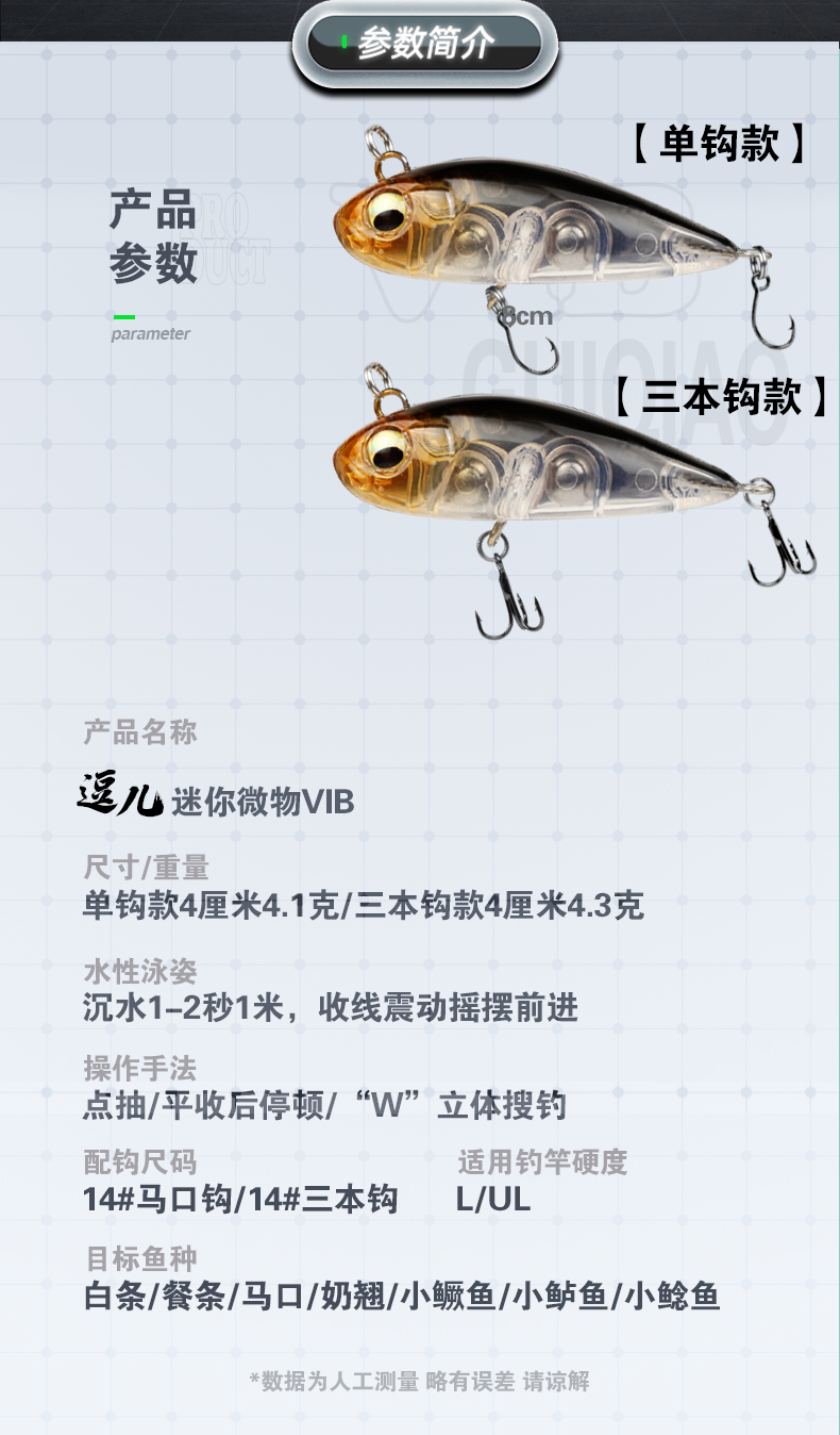 Mini micro-object small vib vibration noise freshwater white strip horse mouth meal strip mouth rofe submerged single hook three hooks