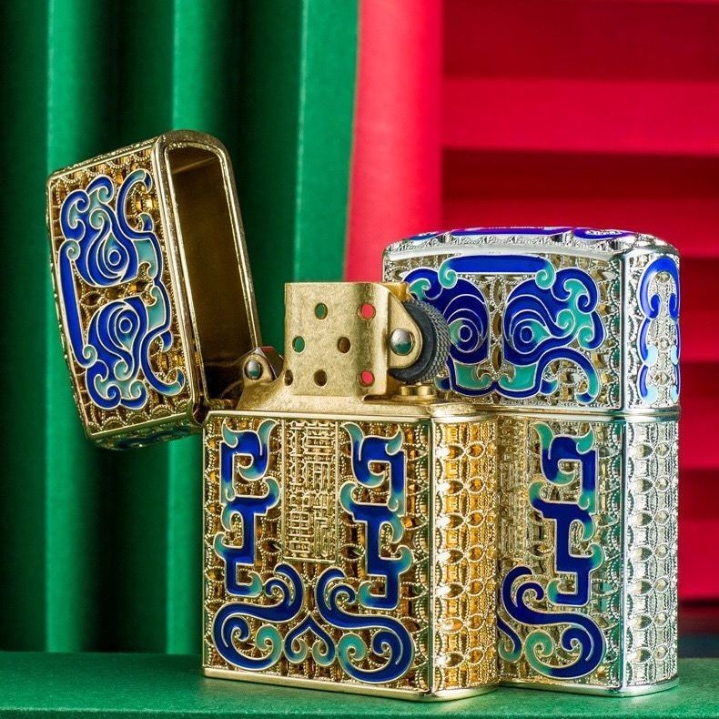 New chief enamel color Xiang Yungrui Kerosene Lighter Flower Silk Studded Hollowed-out Individuality Retro Fashion Armor Machine