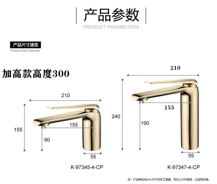 All copper Eifi single K - 97345 - 4 - CP gold plus high - stage basin basin basin basin faucet cold and hot