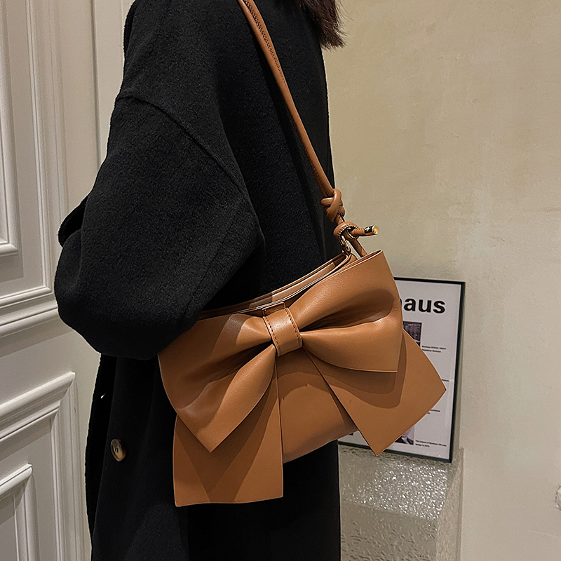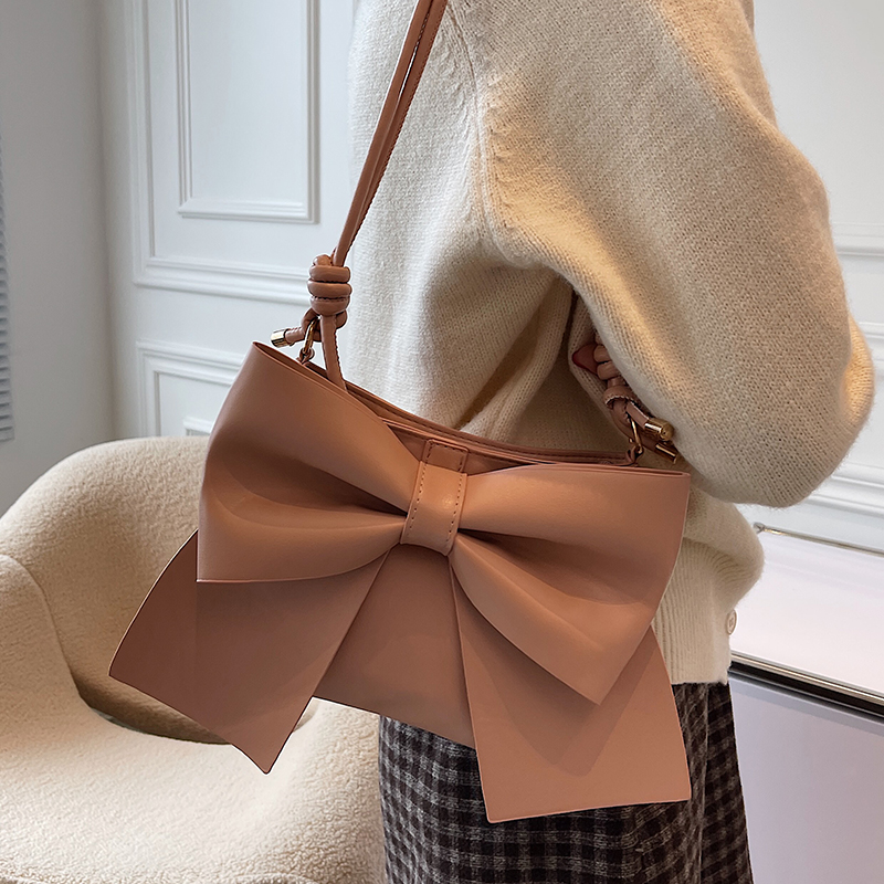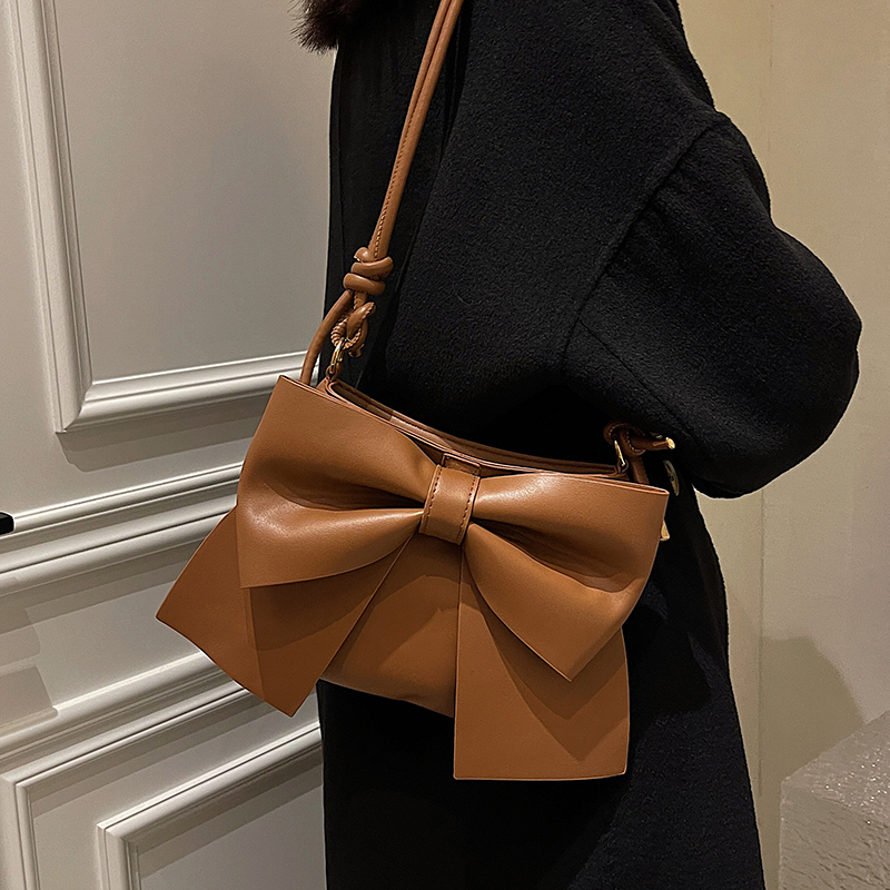 Japan 2021 Autumn Winter Fashion 100 Hitch Woman Skew Satchel Small Crowdtexture Butterfly Knot Single Shoulder Bucket of Shoulder Bucket