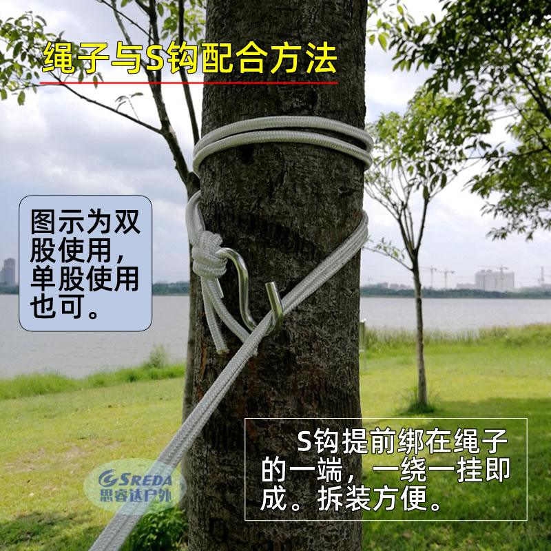 Hammock tree tied rope Braided rope Tied Ribbon S-hook Gourd hook Carabiner Swing rope Chair hook
