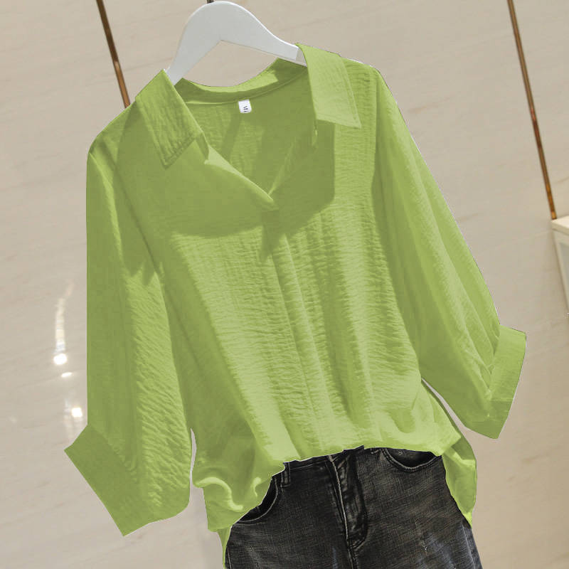 Cotton and linen shirt women's short-sleeved summer 2021 new Korean loose plus size v-neck thin half-sleeved top