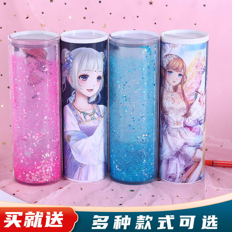 Cylinder pencil case bursting with fumbling sound net red streaming sand lead pencil case Large capacity new primary and middle school students' boys and boys'