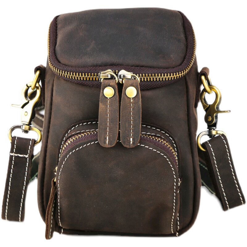 Crazy horse leather retro small bag new men's waist bag cowhide shoulder Messenger bag casual men's bag genuine leather sports trendy bag