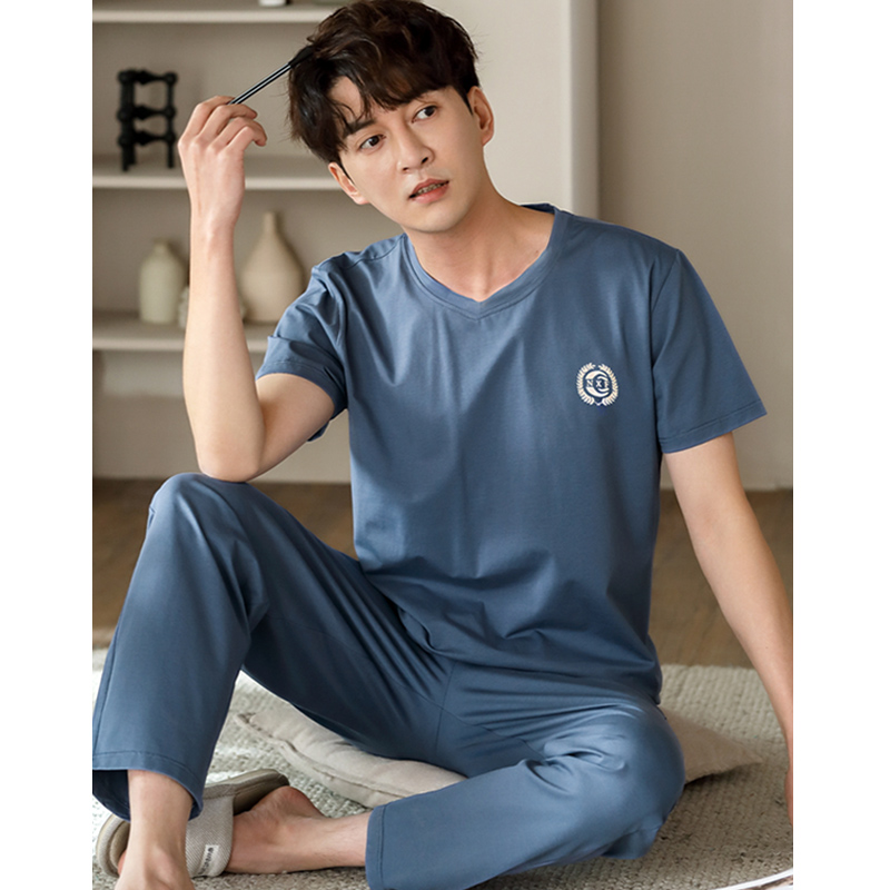 Pajamas men's summer short-sleeved trousers modal cool thin section summer ice silk men's home service three-piece suit