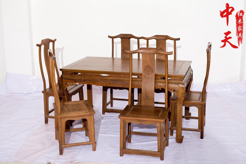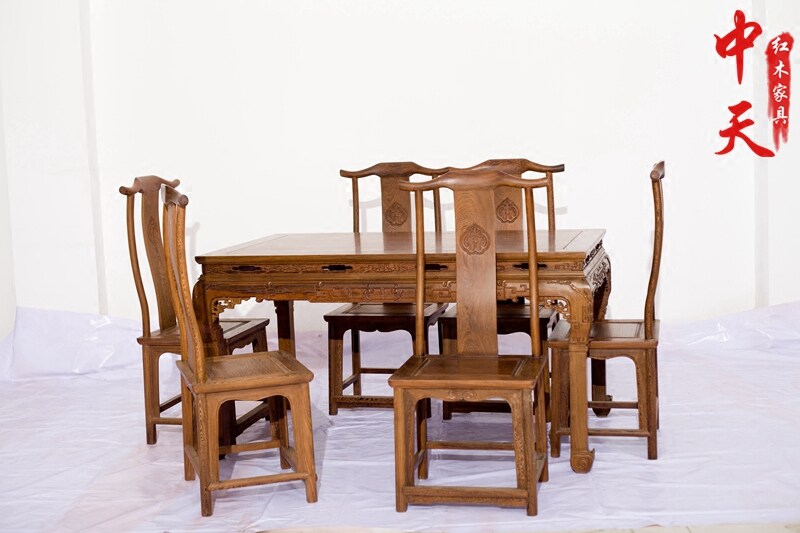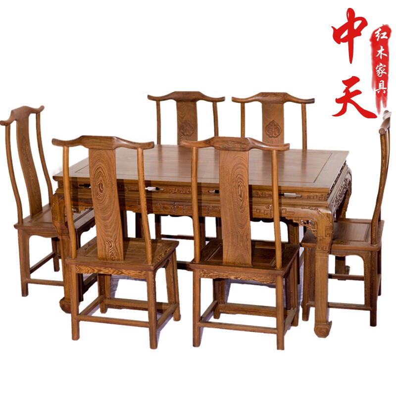 Chicken Wings Wood Furniture Red Wood Dining Table Rectangular Solid Wood Dining Table Carved Vintage Simple Dining Table And Chairs Combined 7 Pieces