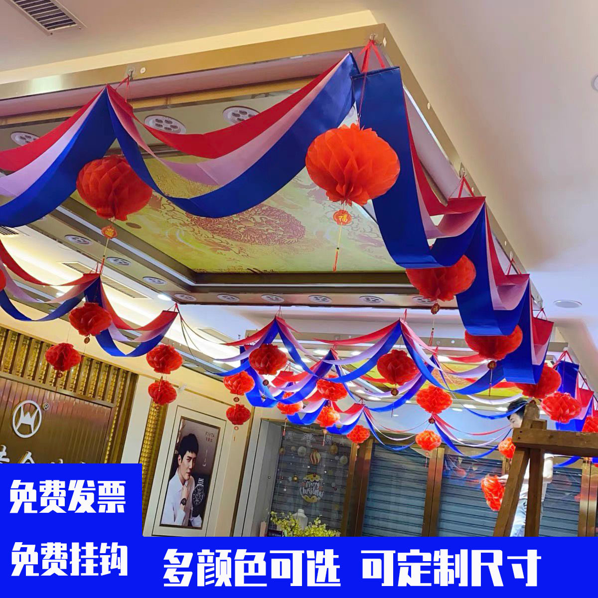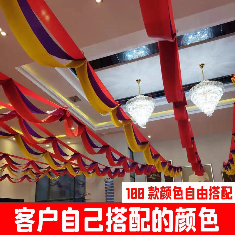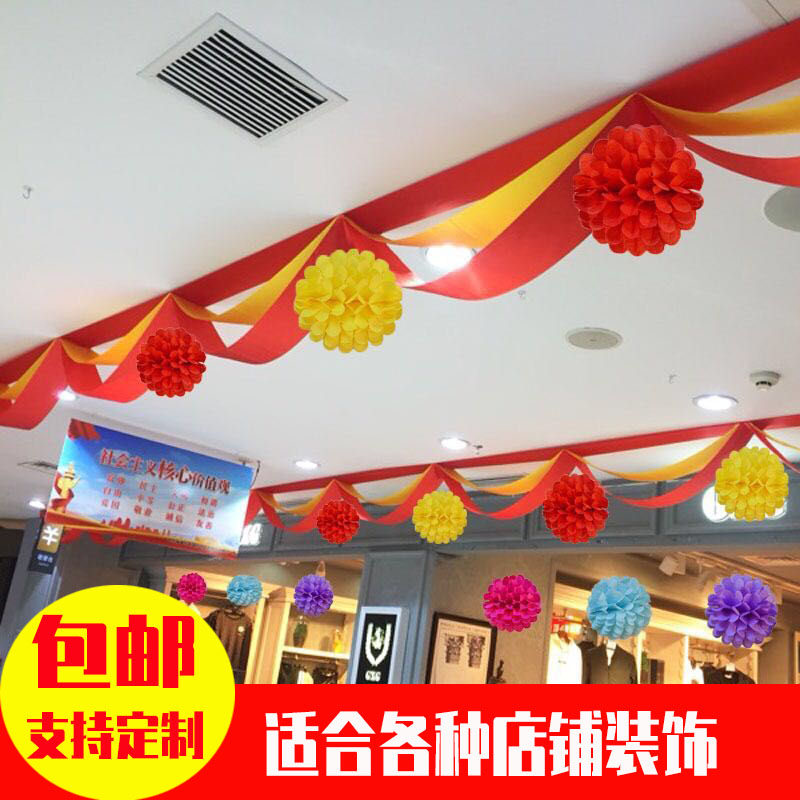 Wave flag suspended ceiling ribbon blue decoration supermarket shopping mall facade school venue layout top bunting