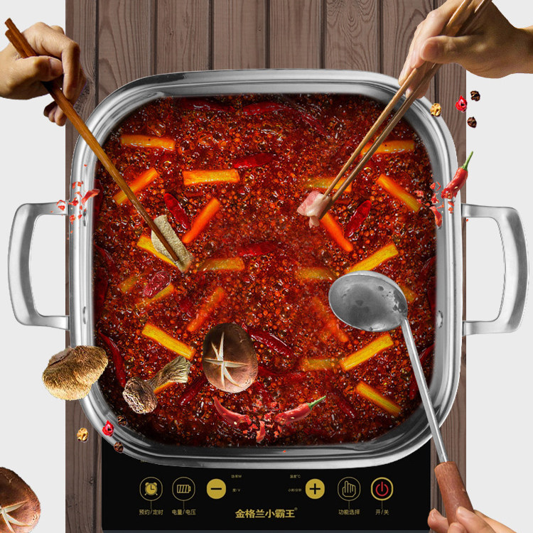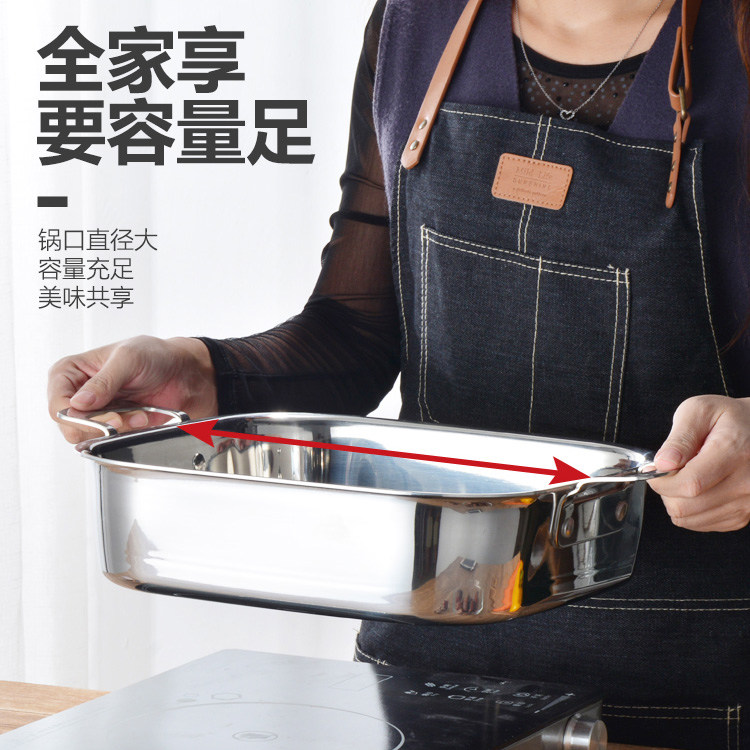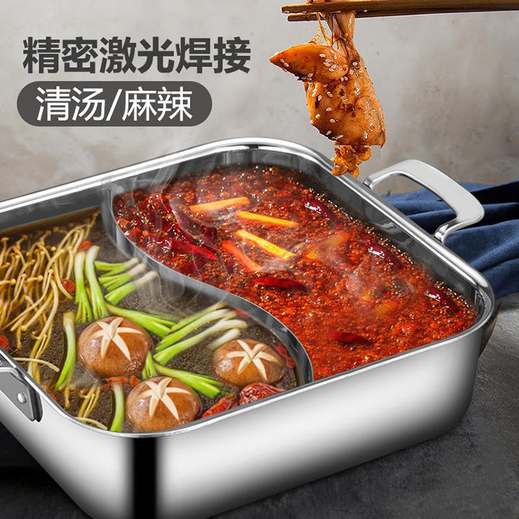 304 stainless steel square hot pot boiler thickened three-layer steel clear soup mandarin hot pot induction stove with dining room hotel